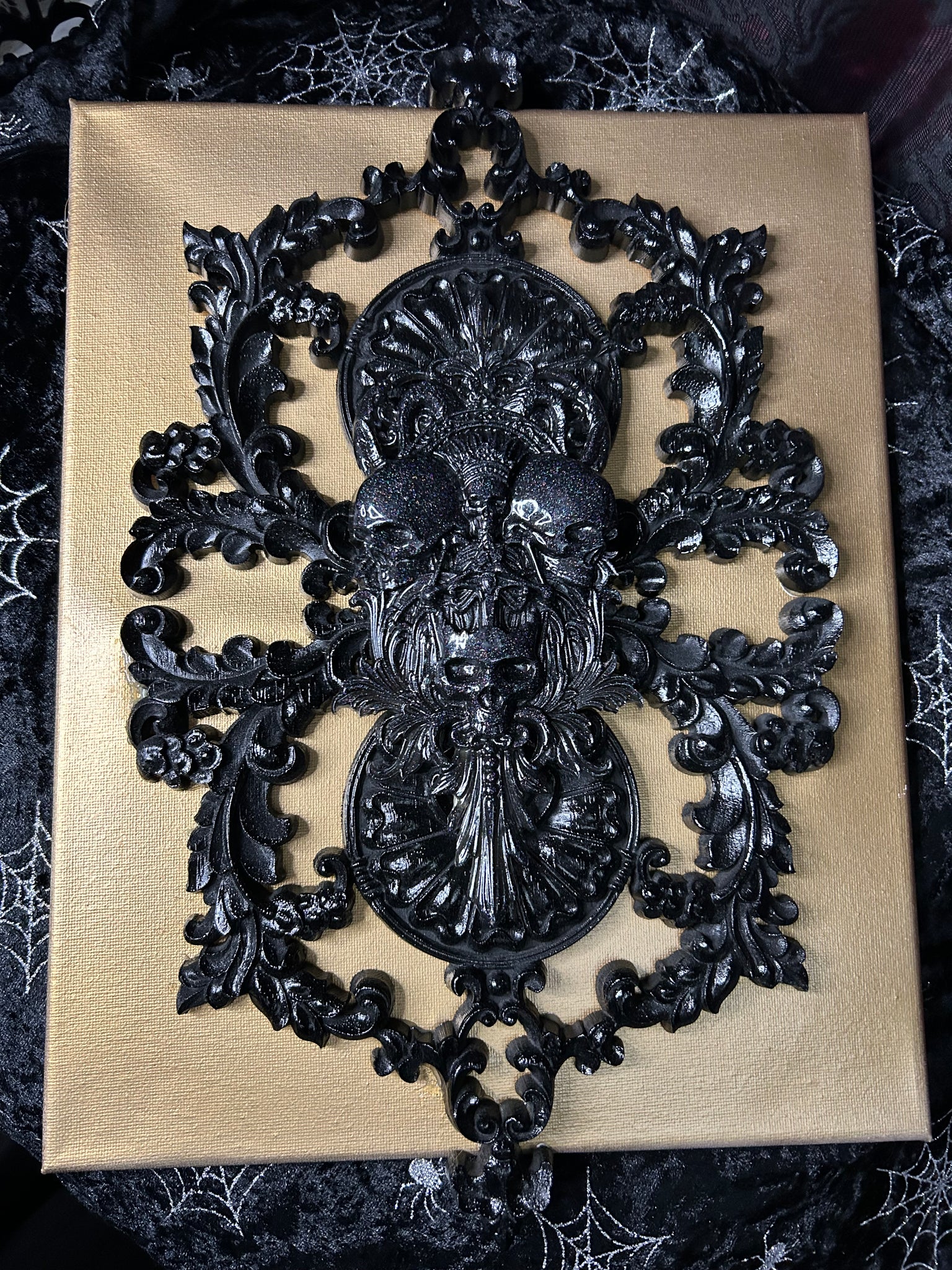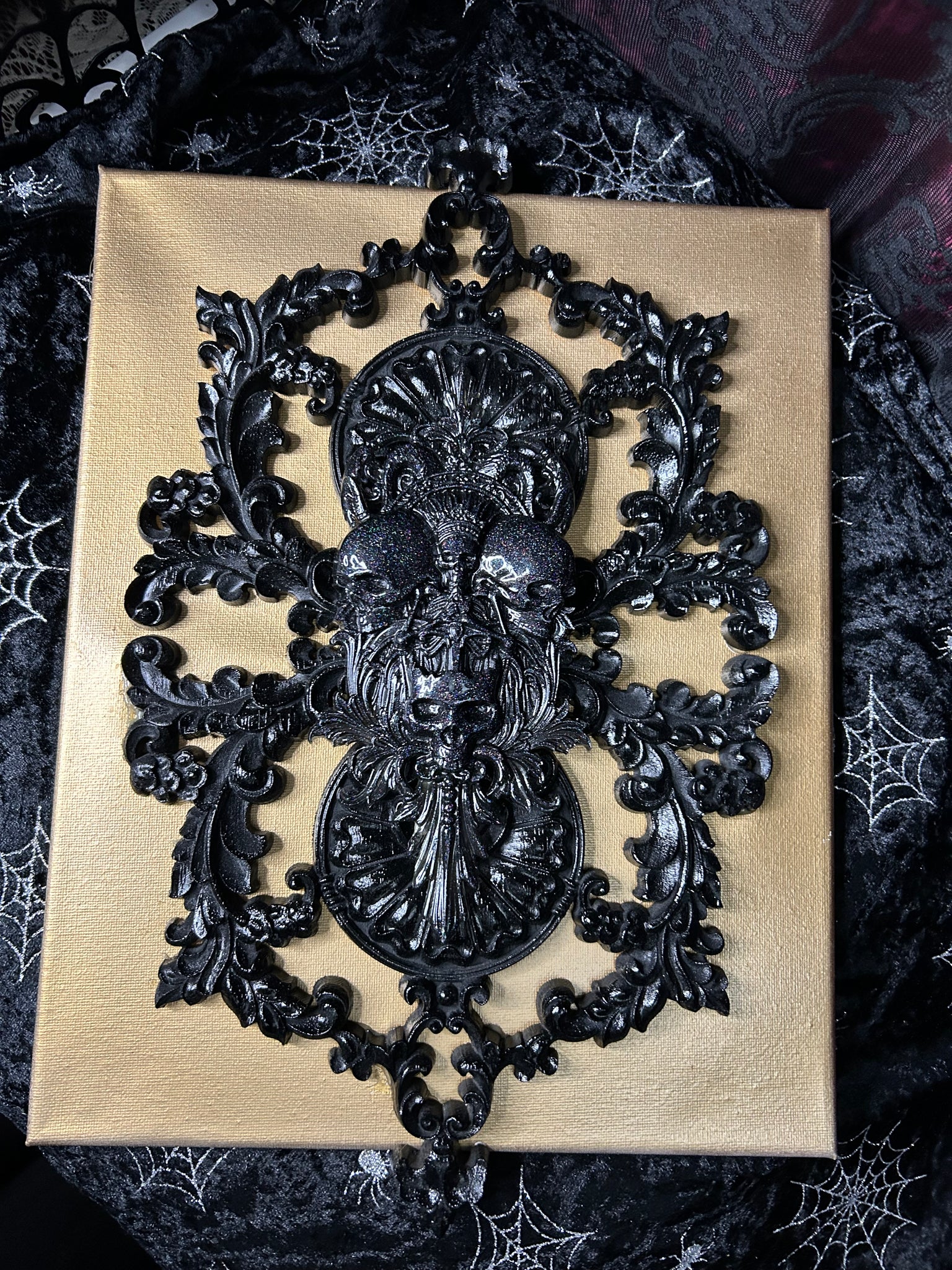 Raven skulls, winged creatures, angels and more.  This collection features ornate and decadent pieces that will sinfully adorn your walls.