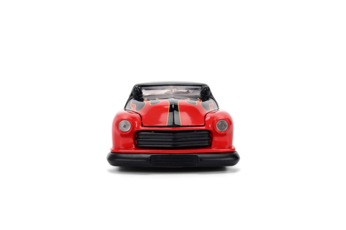 This die-cast collectible features the beloved Mickey Mouse in his timeless, vintage style, standing proudly next to a beautifully detailed 1951 Mercury Coupe. The Mercury's stunning flame design in red and yellow captures the spirit of classic car culture, while Mickey's signature look brings a playful Disney touch.