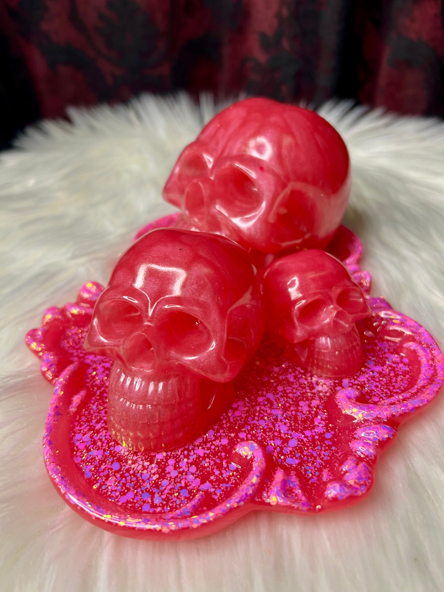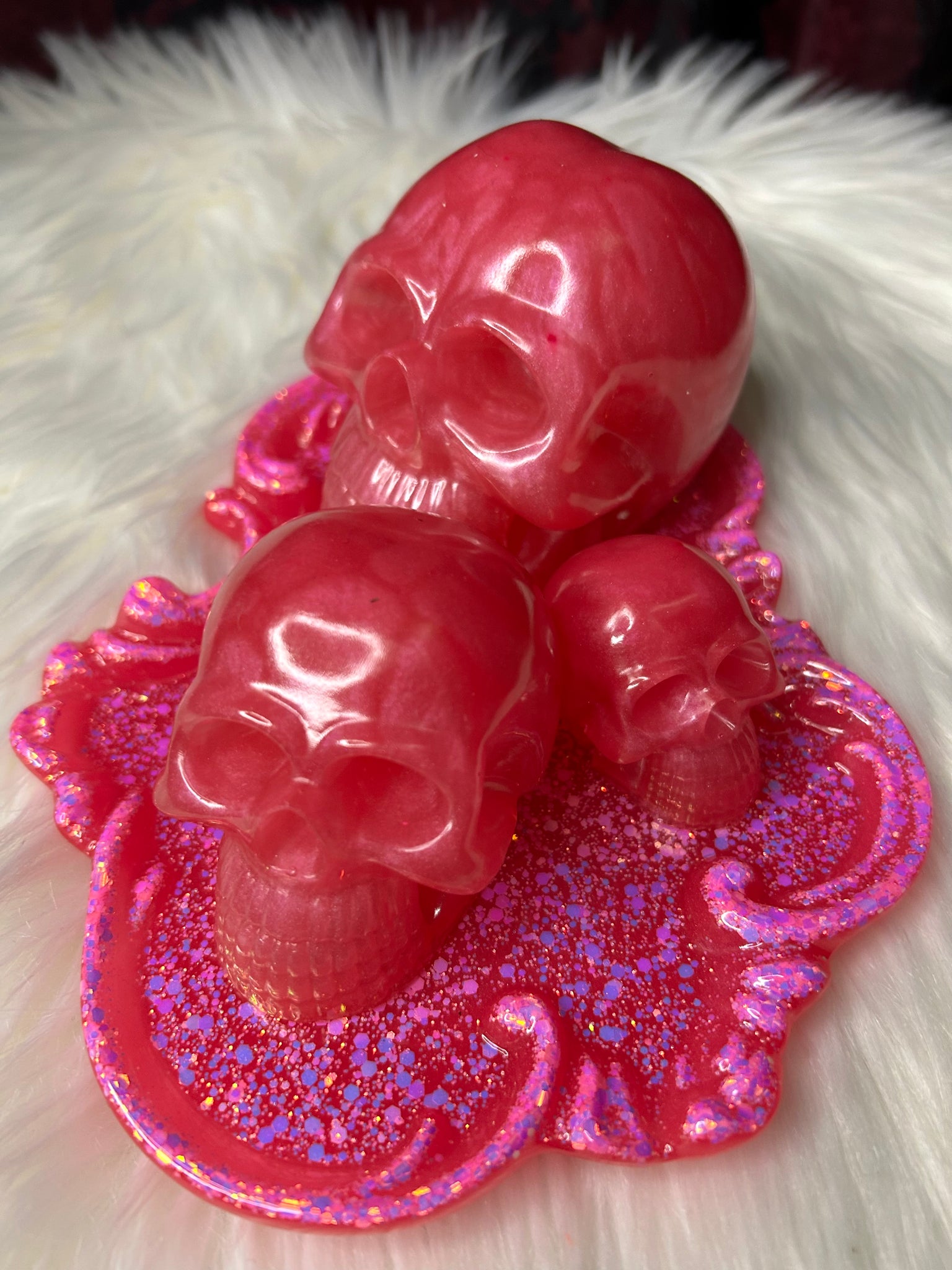 Handmade by me, these Goth aesthetic skull decor pieces really make a statement to any room.   Will have these available in an array of colour ways.  Custom requests can be made :)