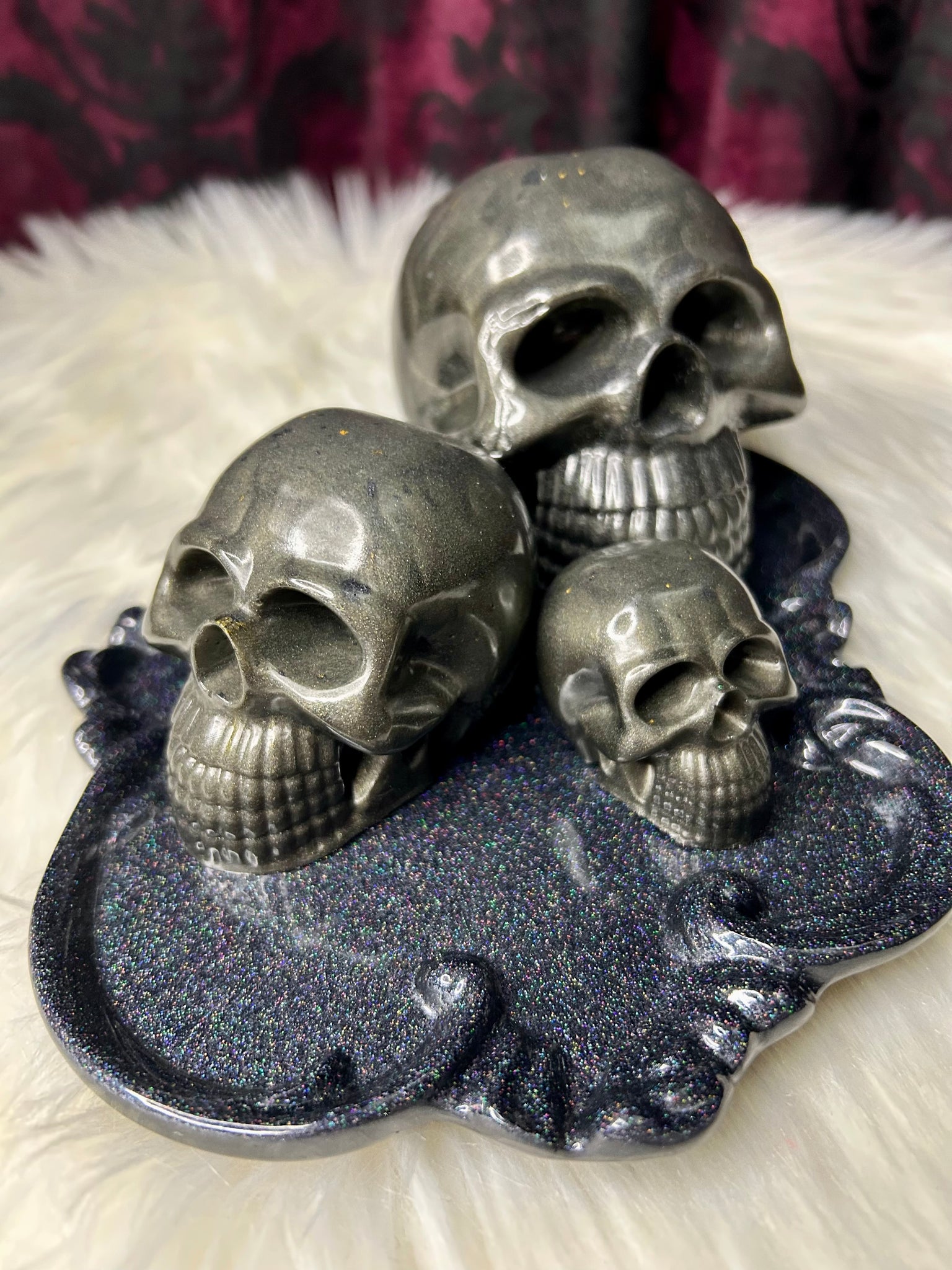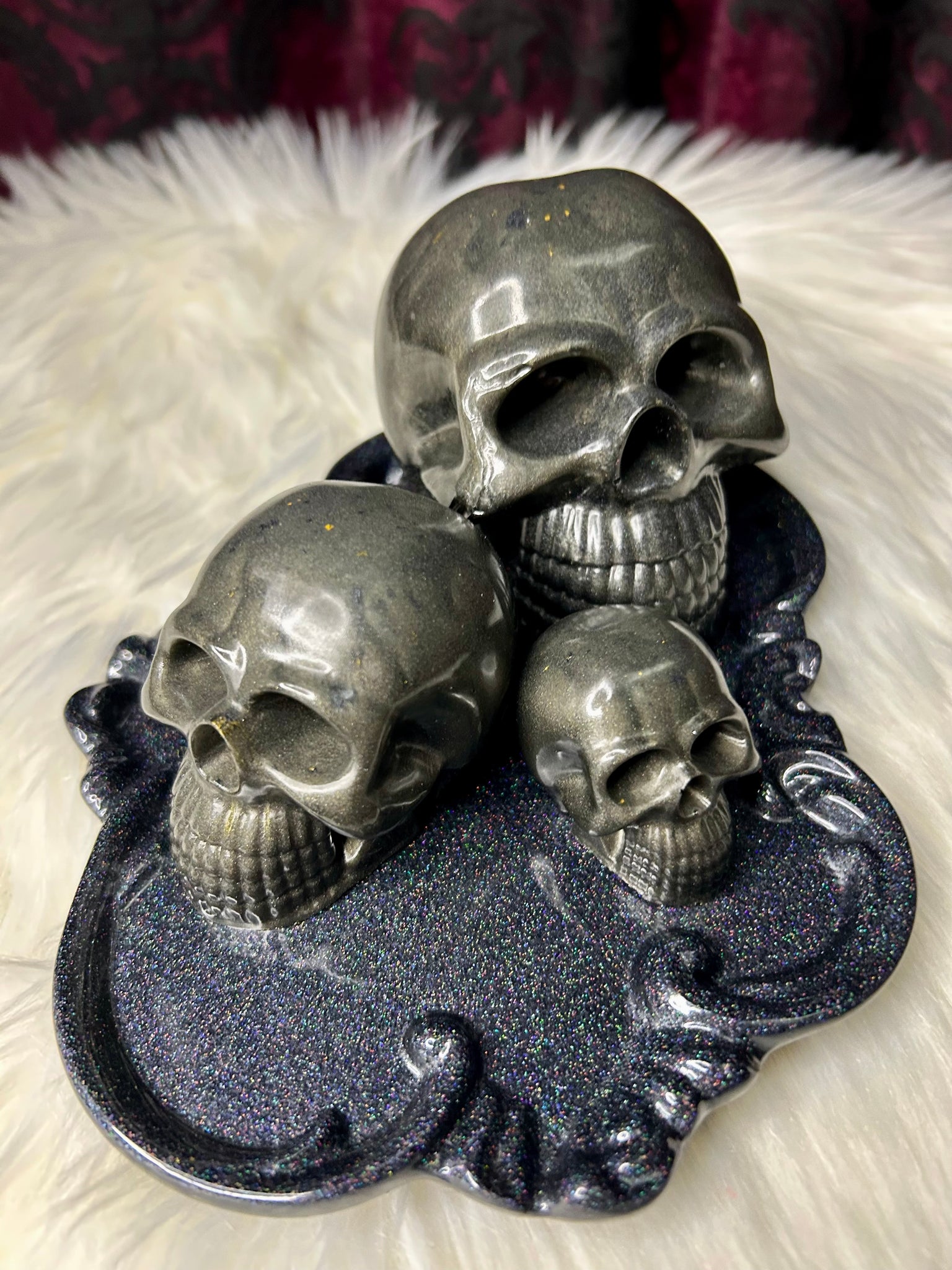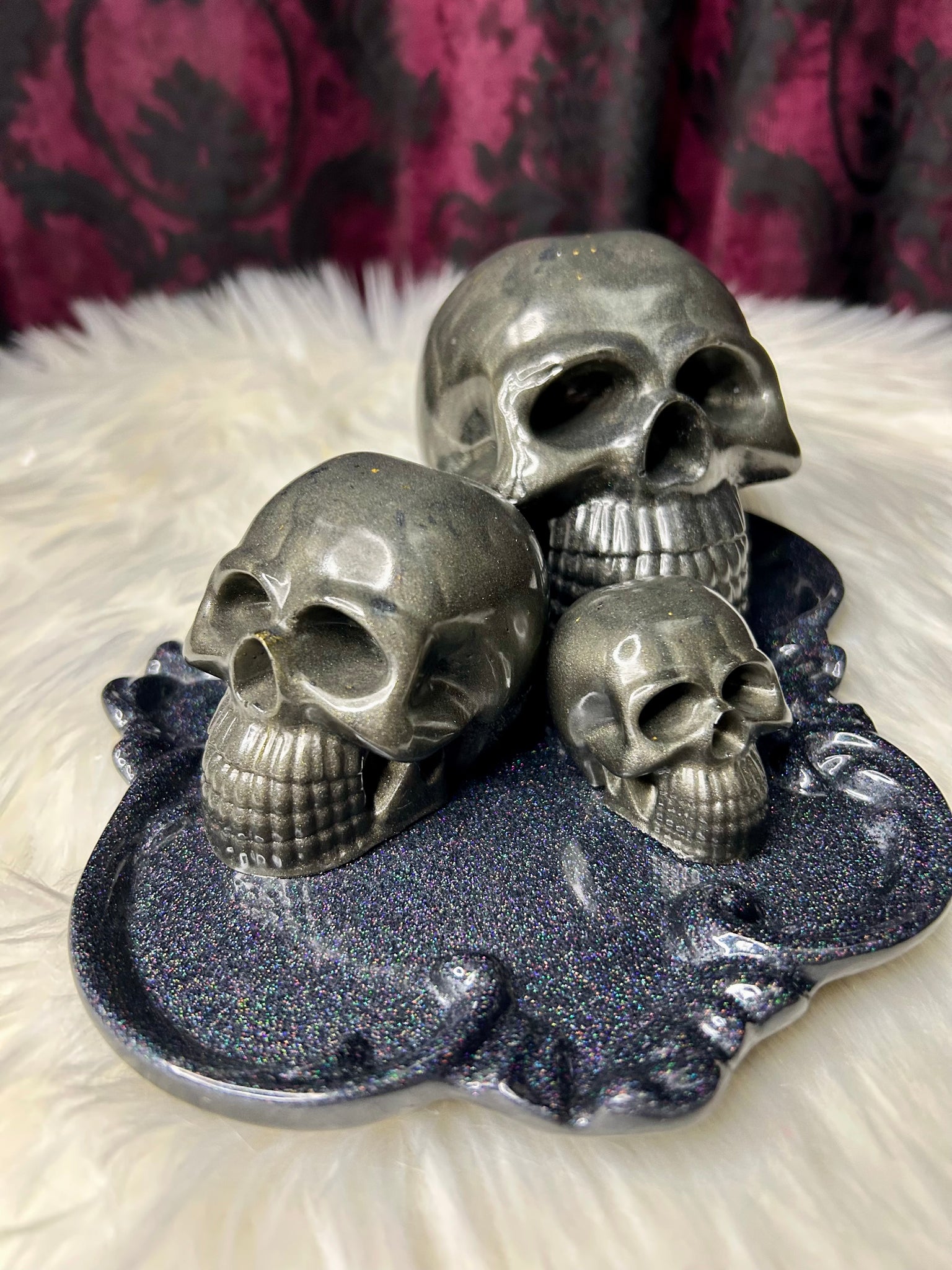 Handmade by me, these Goth aesthetic skull decor pieces really make a statement to any room. Will have these available in an array of colour ways. Custom requests can be made :)
