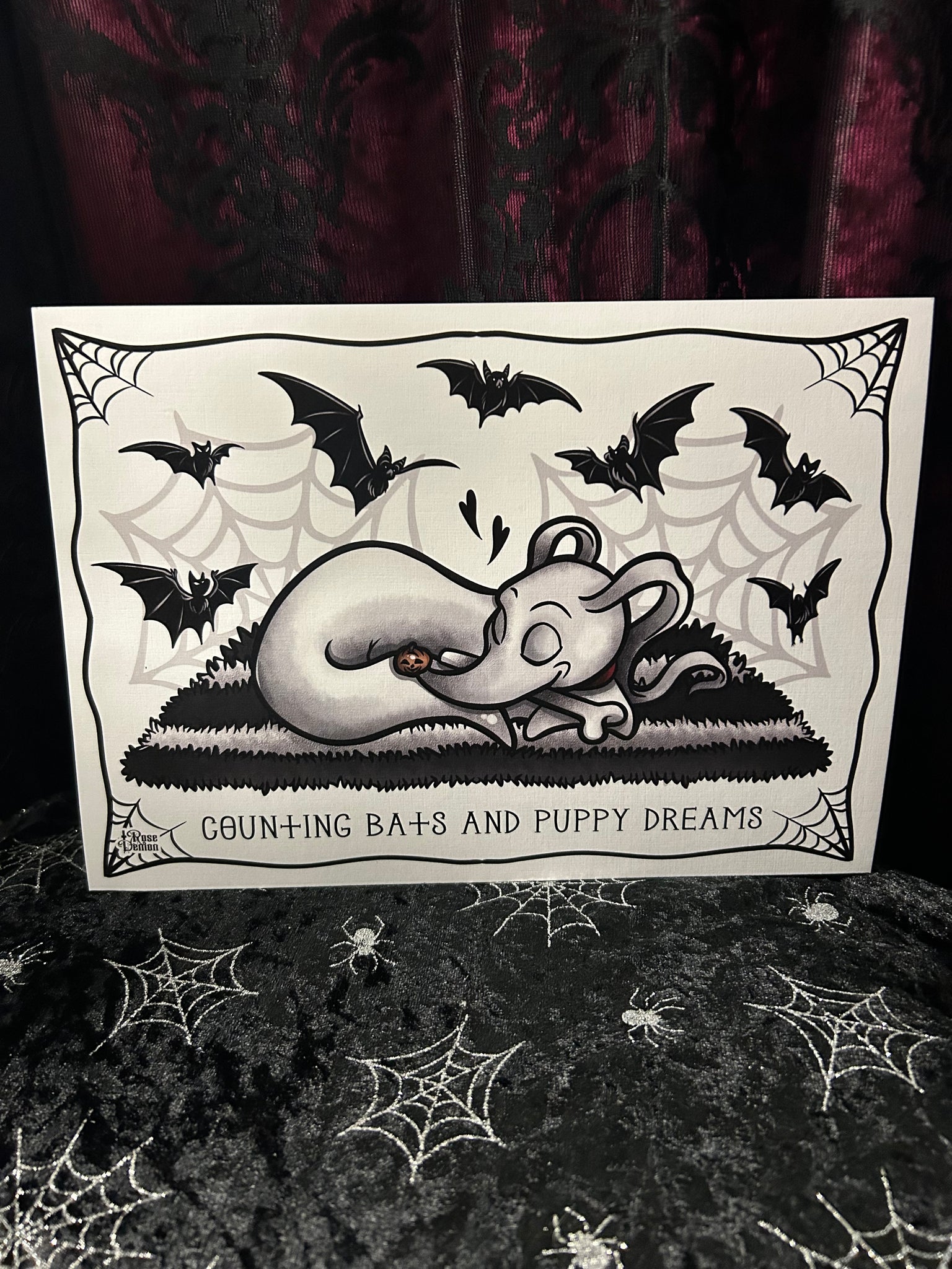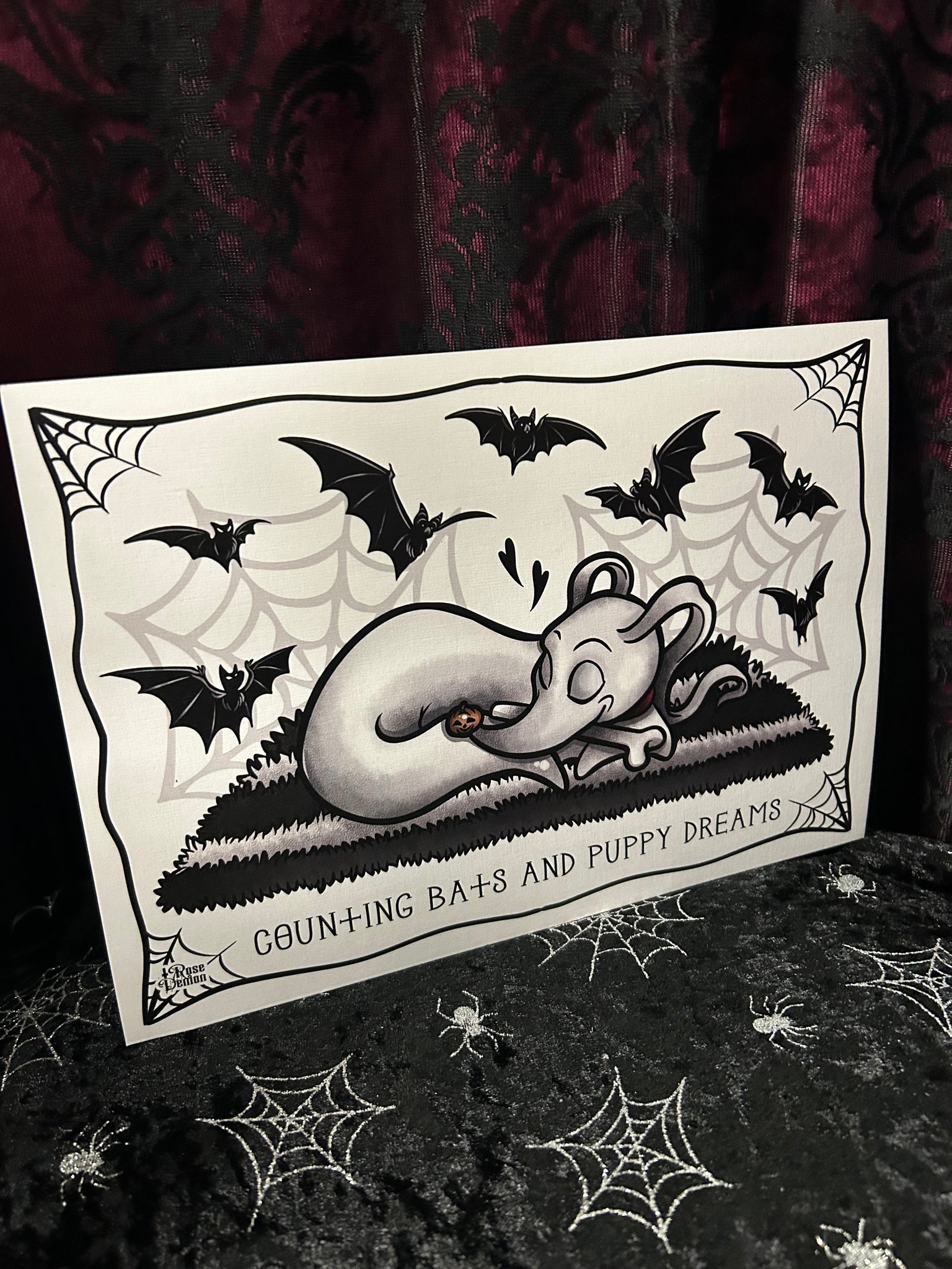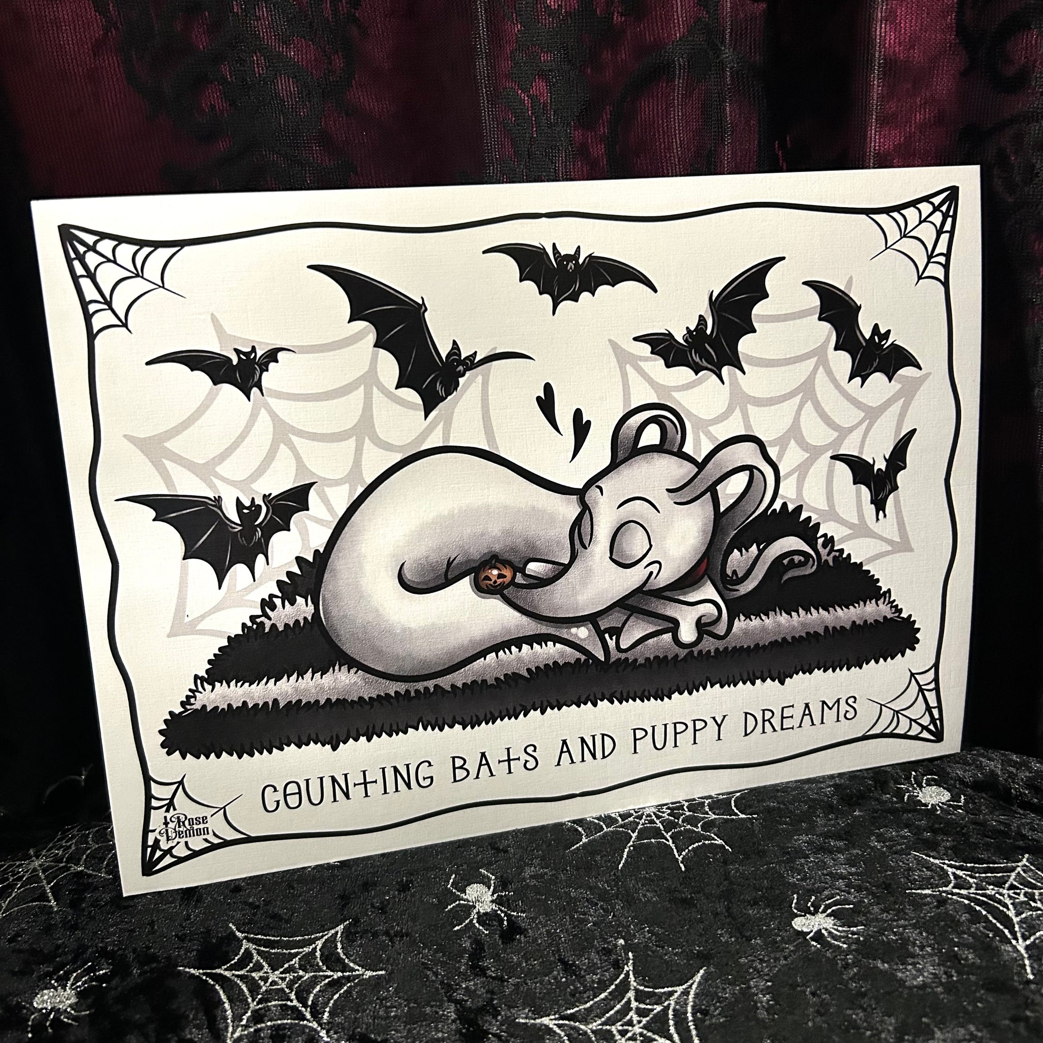Counting Bats & Puppy Dreams A4 Print - Art By Rose Demon