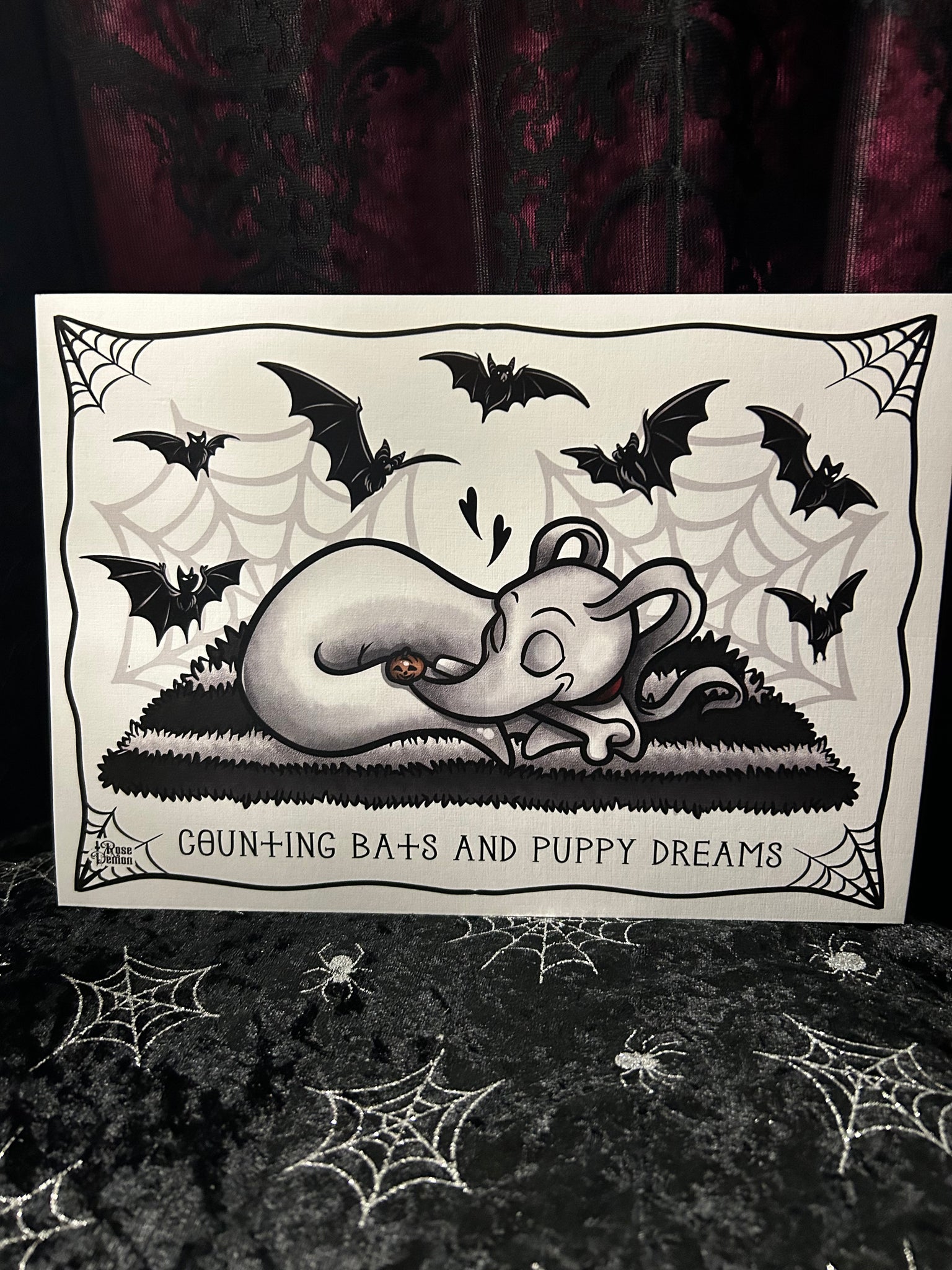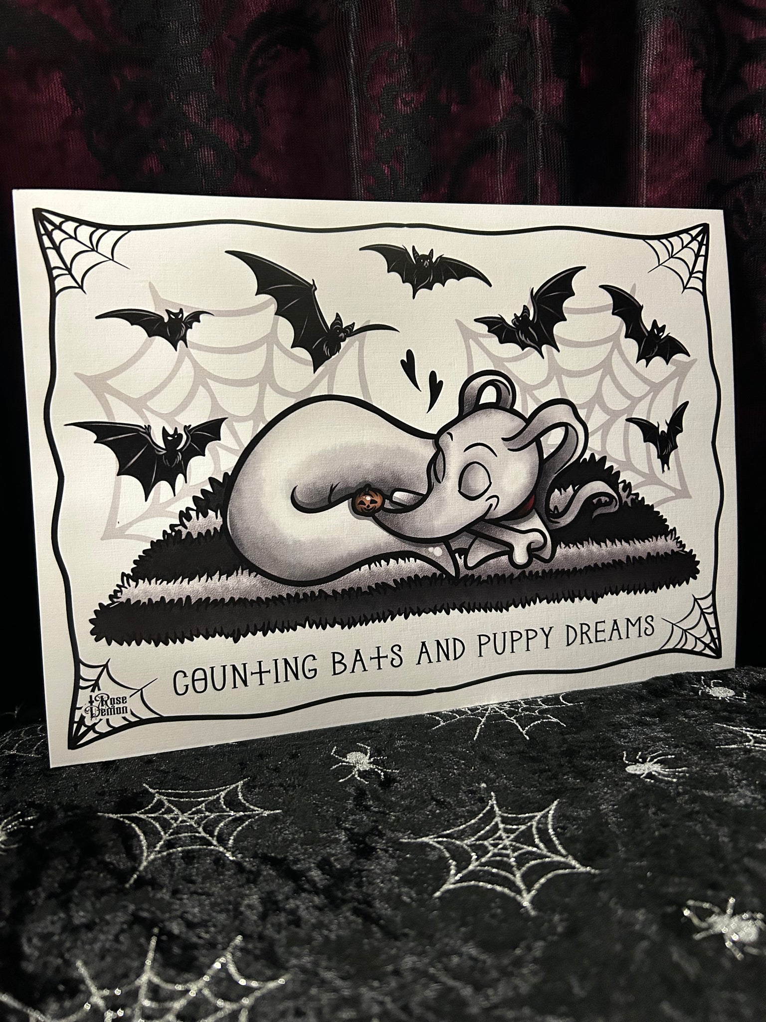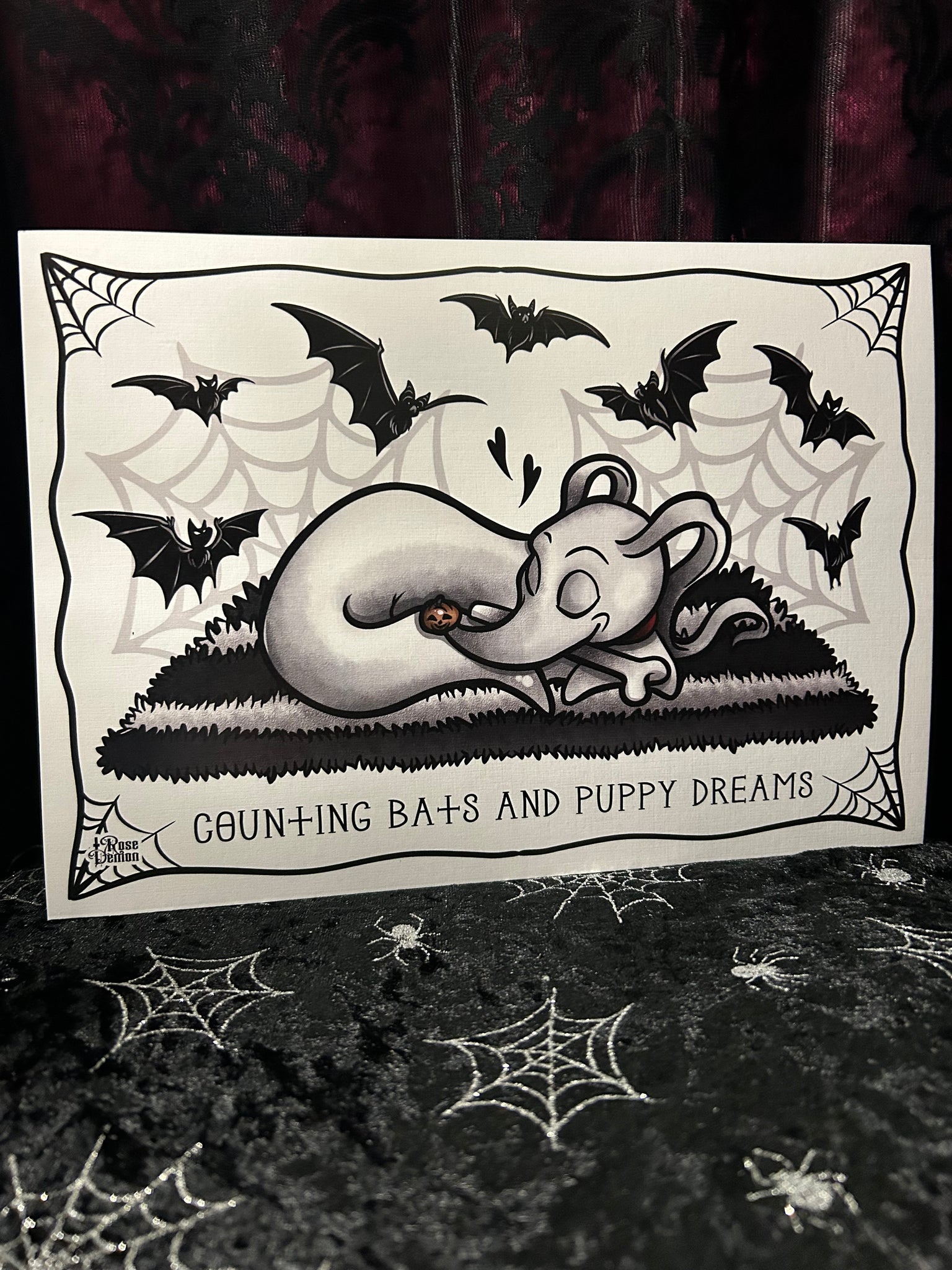 Counting Bats & Puppy Dreams A4 Print - Art By Rose Demon