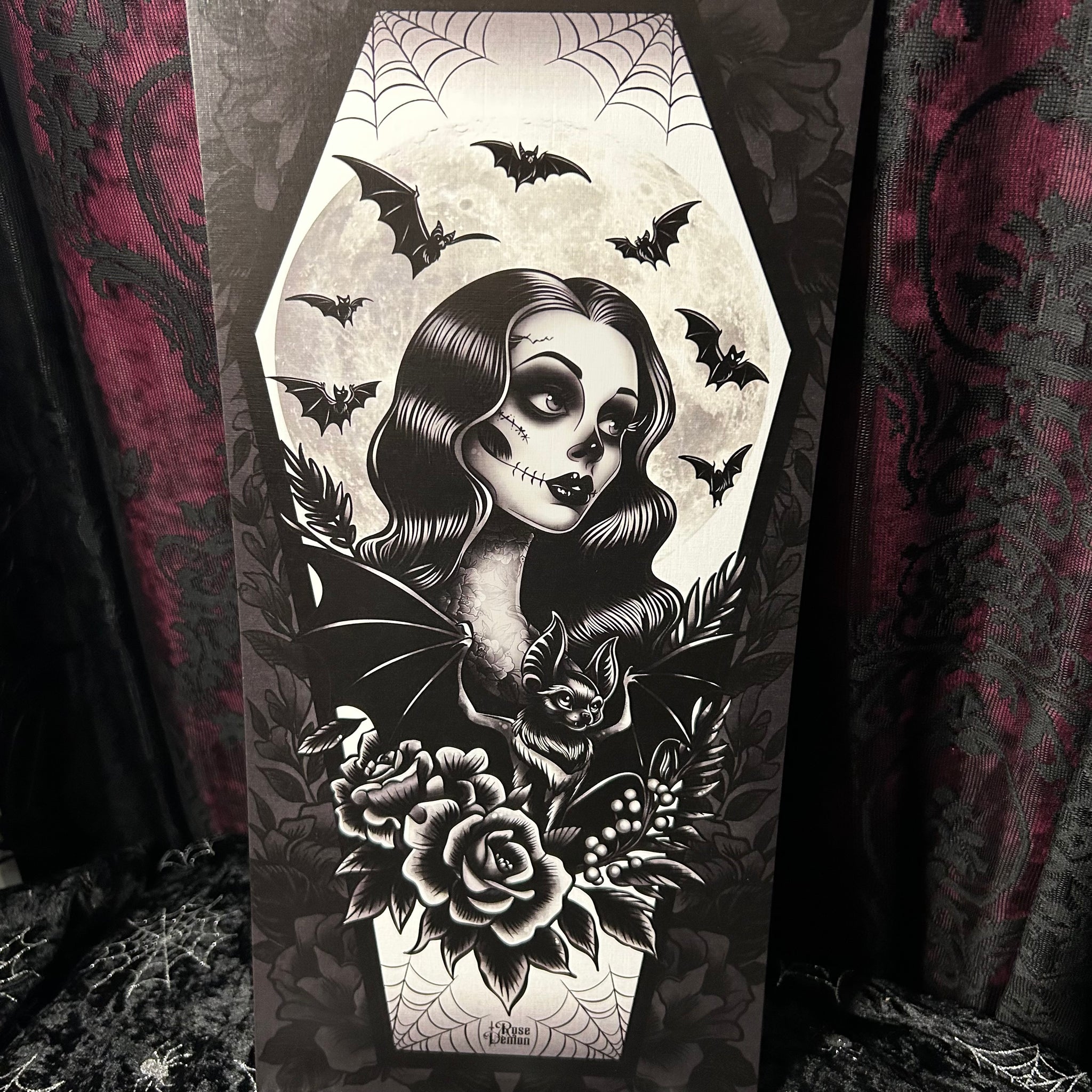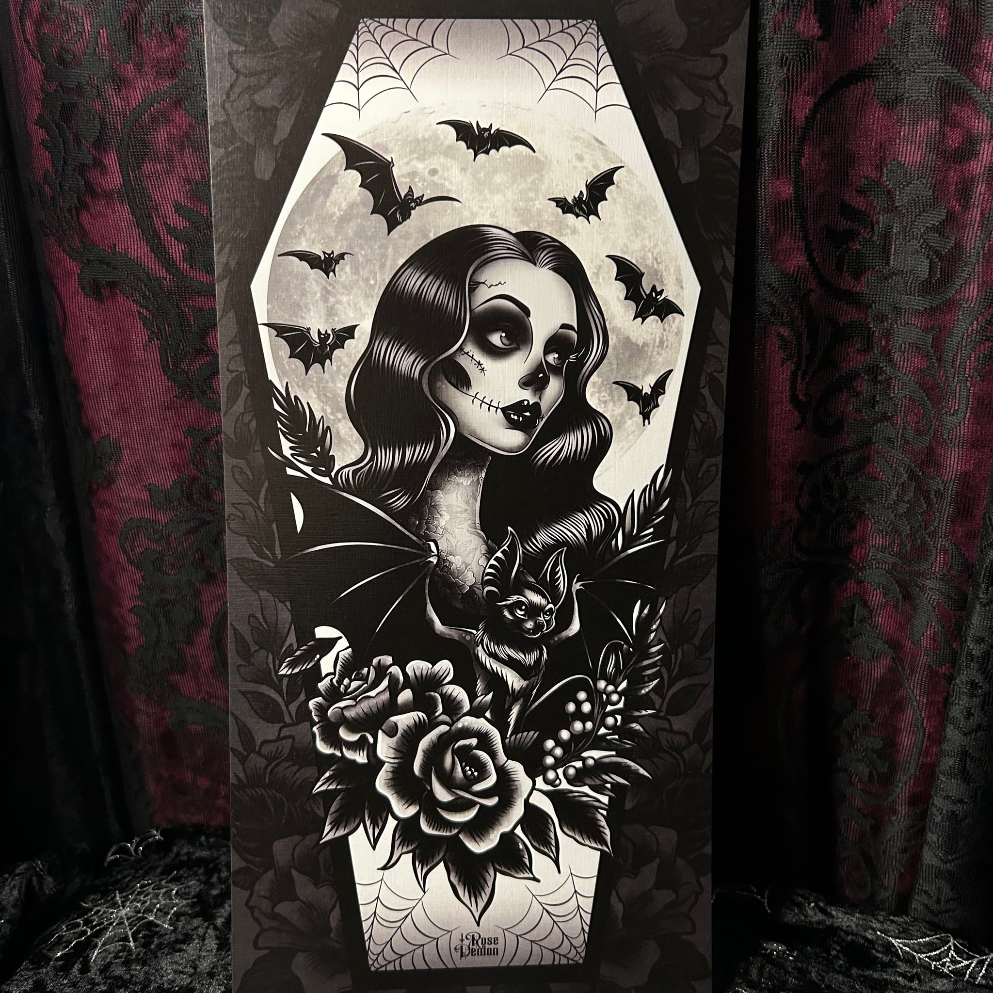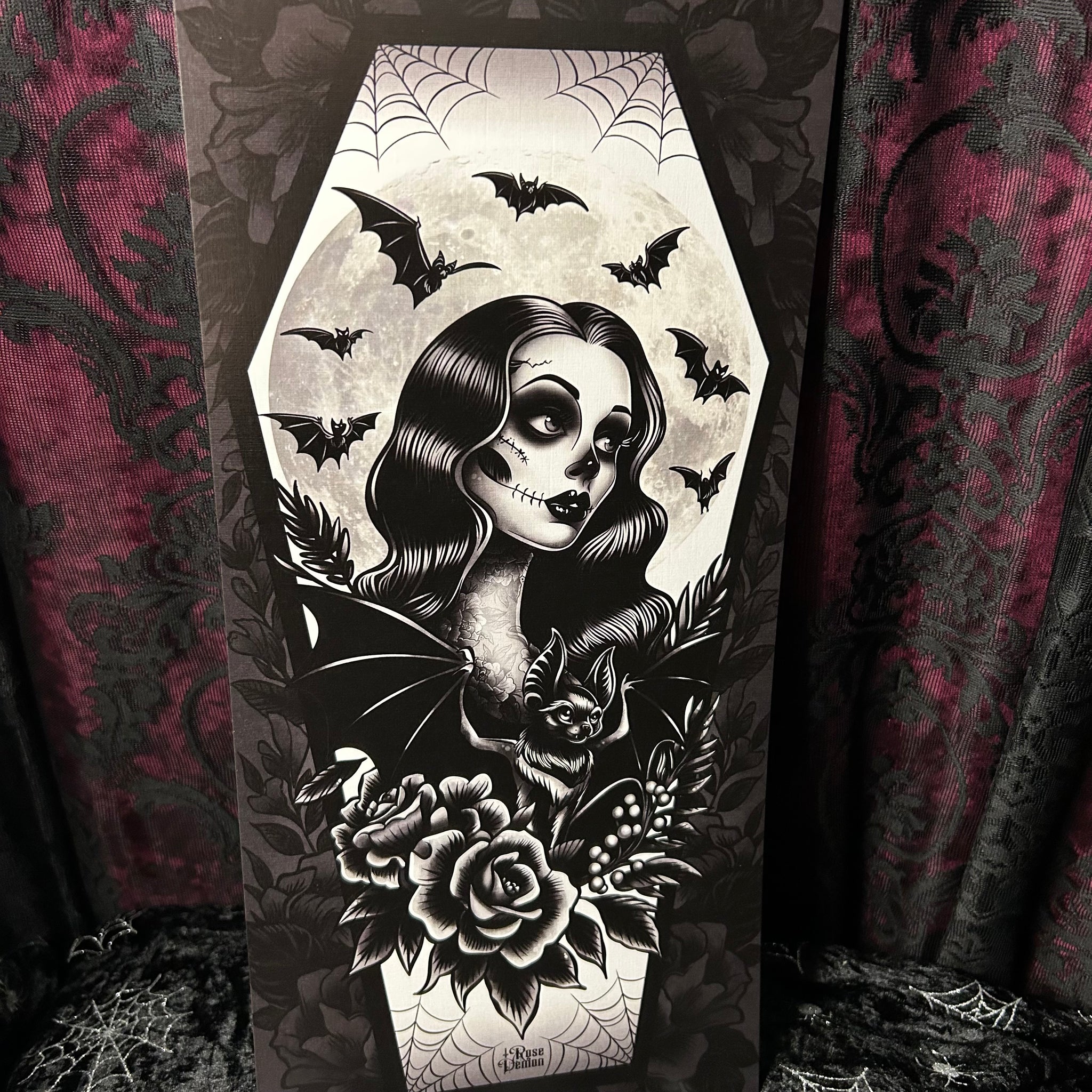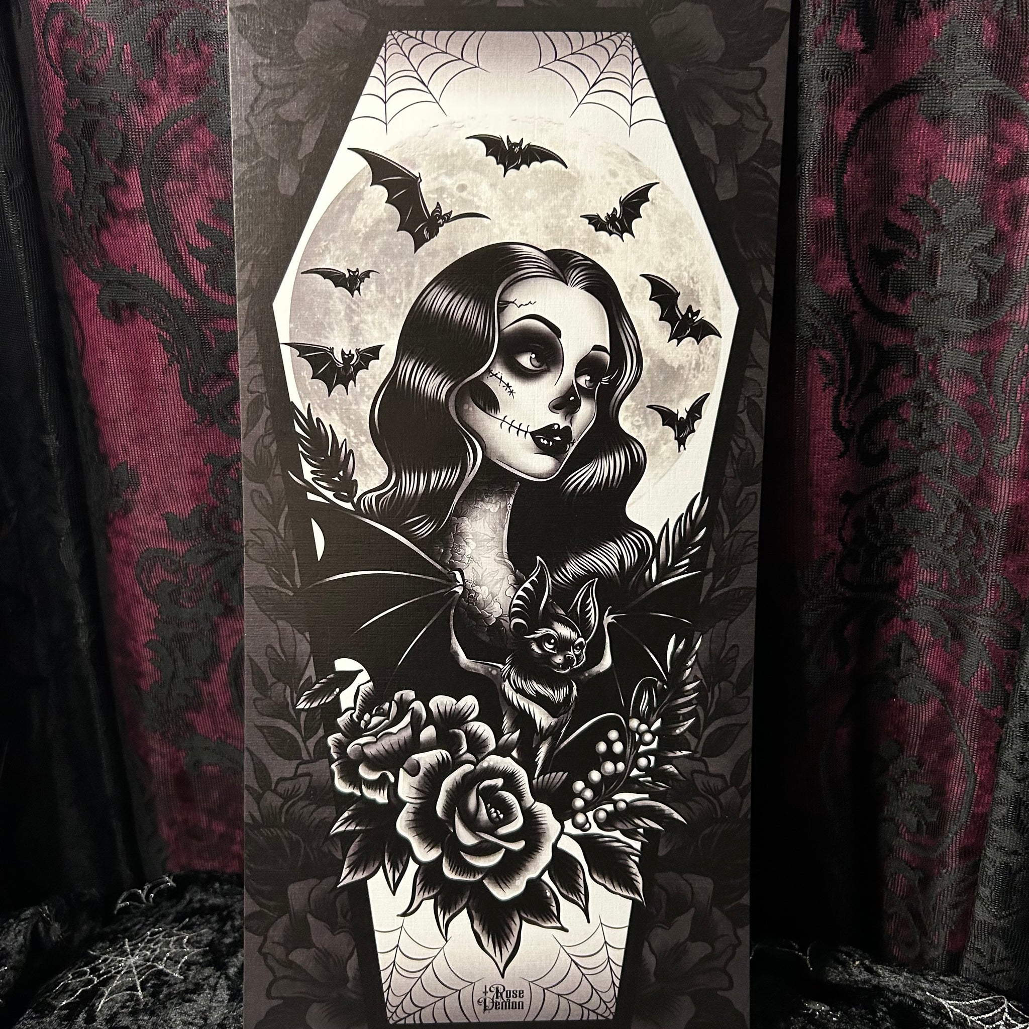Gothic Bat lady Mini Scroll - Art By Rose Demon