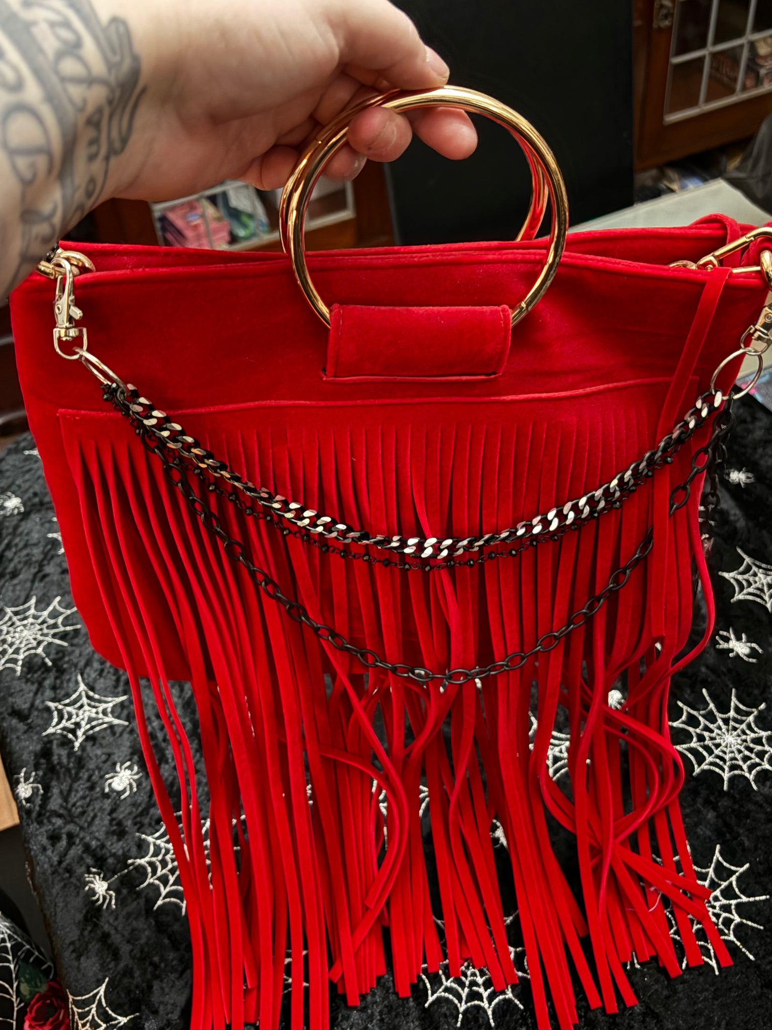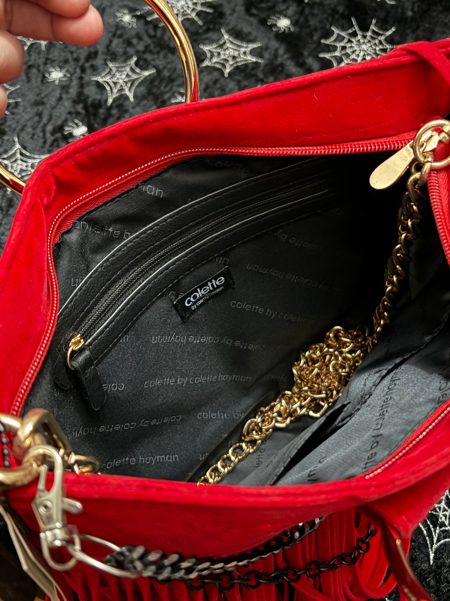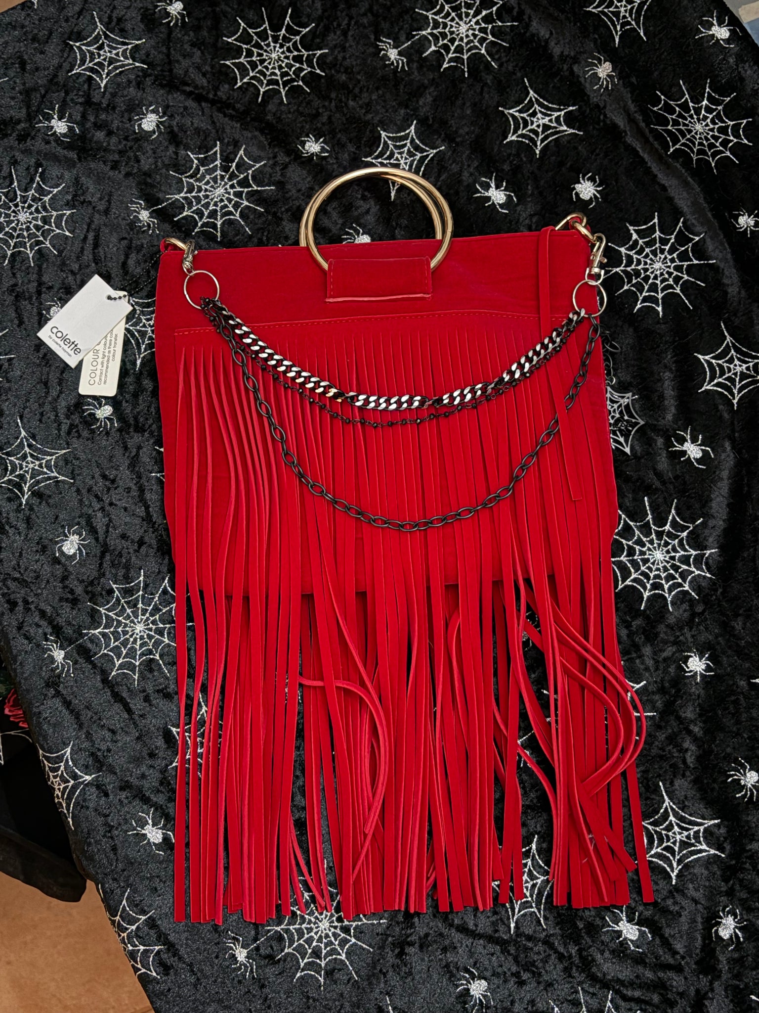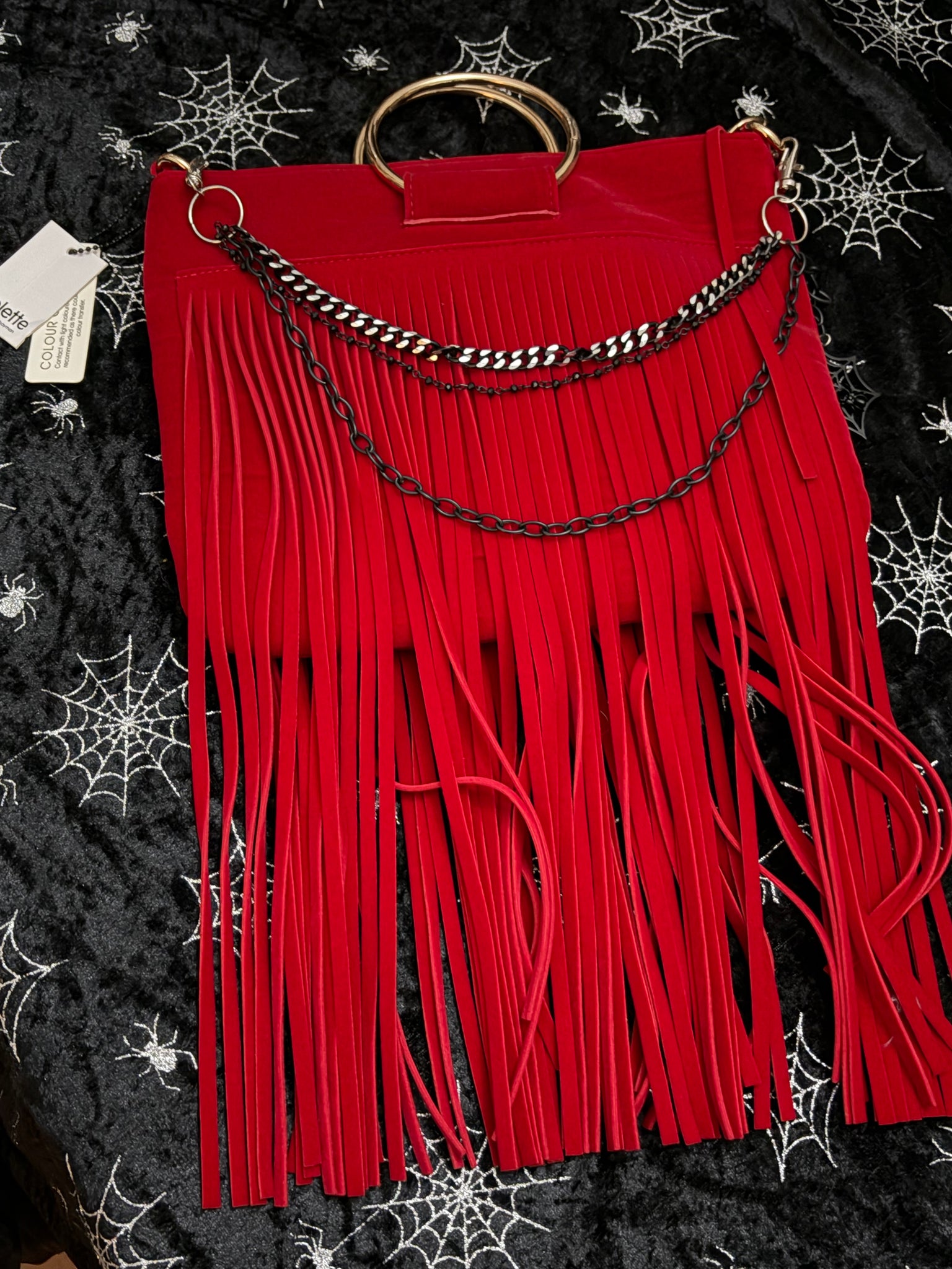 Collette red fringed clutch handbag, brand new with tags.  Spacious small bag, perfect for a night out, decent compartment inner.