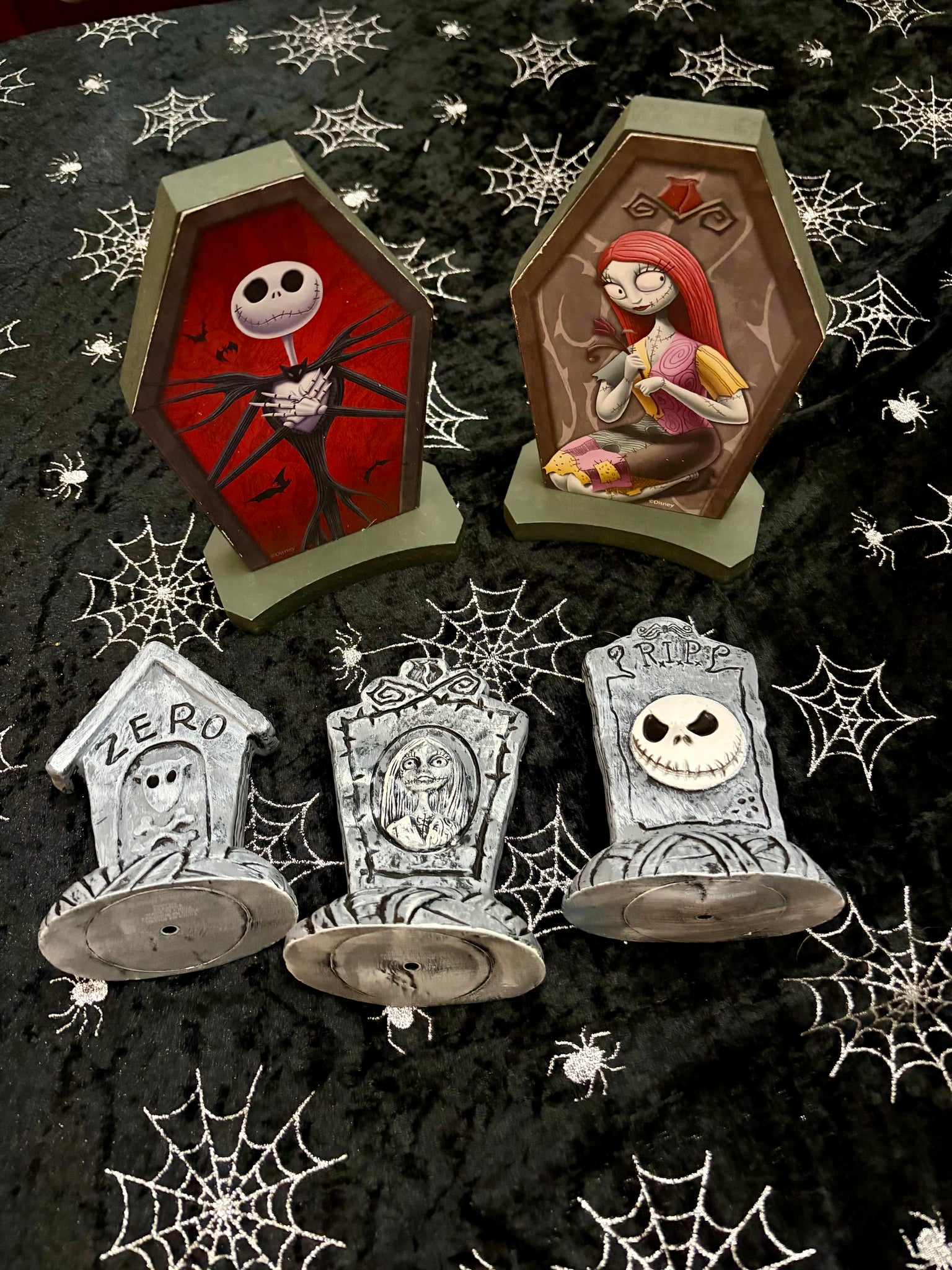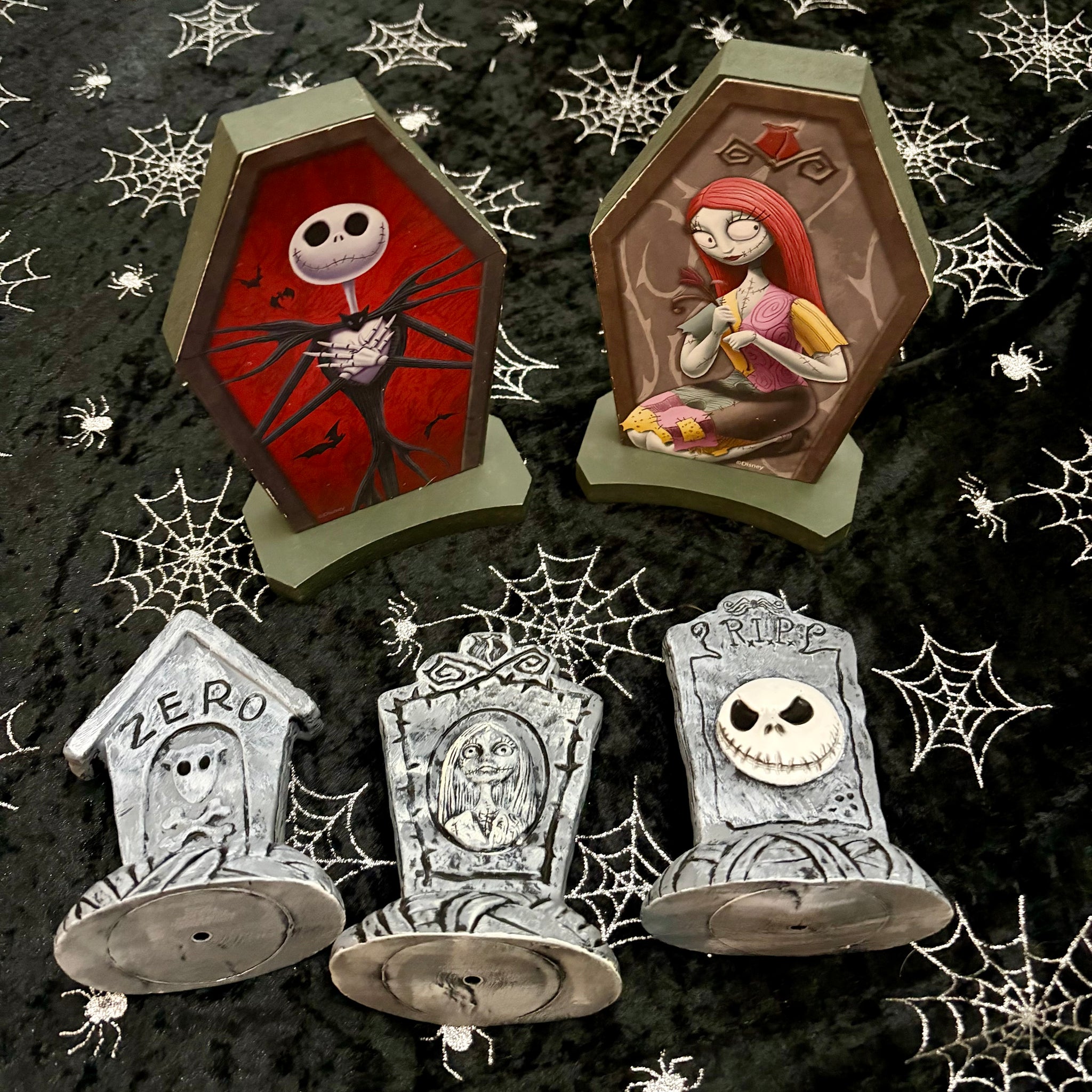 Nightmare Before Christmas Bundle. Wooden and PVC tombstones. 5 in total, secondhand