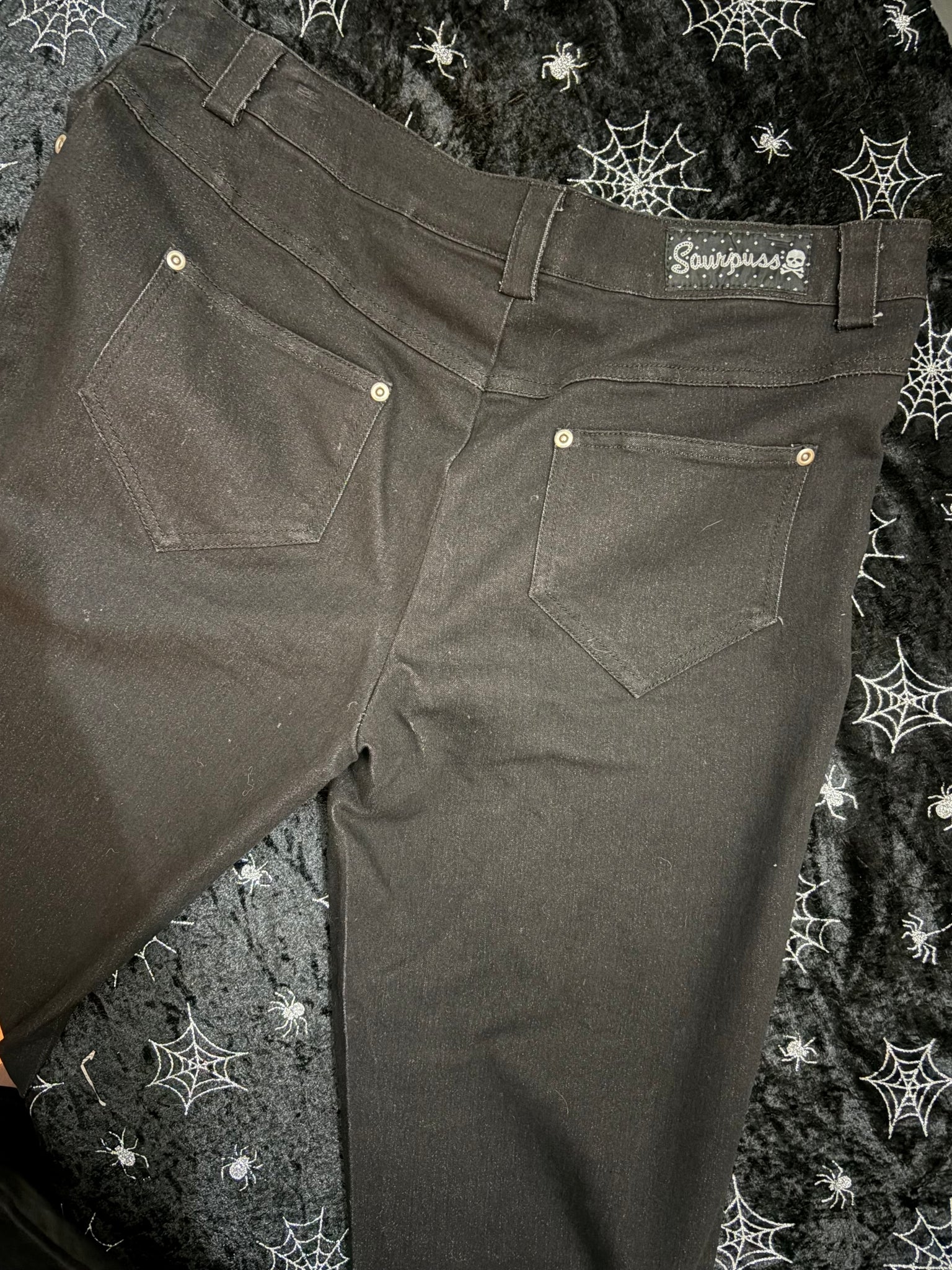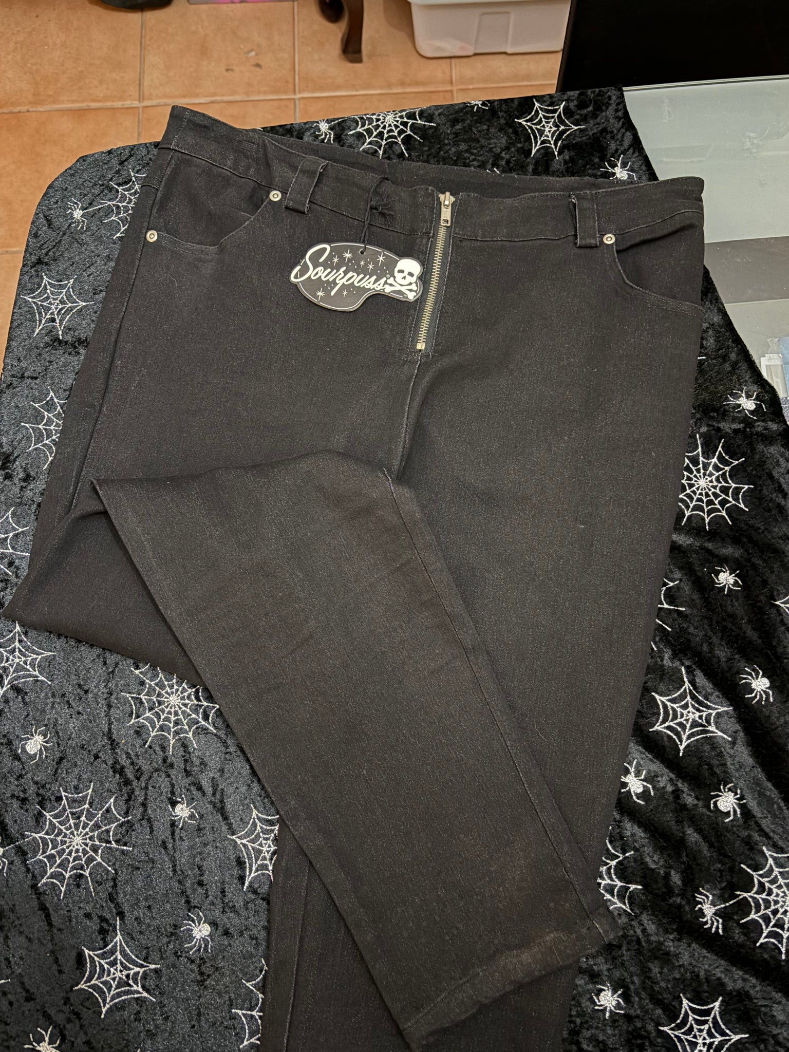 Sourpuss Clothing, Brand new with tags, size XXL slightly stretchy, Sourpuss is no longer around, but was a fav brand for alt clothing back in the day! I had another pair of these jeans and these were a spare pair.  So comfortable