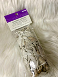 White Sage Smudge sticks are ideal for cleansing and purifying your home with herbaceous notes. Sage has traditionally used in ancient spiritual ritual by Sharman, healers and native American tribes. Burning Sage is said to ward off lingering negative energies and to purify spaces. Sage has been used for healing, and for blessing. Sage must always be practiced with respect, intention and connection. Our beautiful Californian White Sage herbs have been sustainably grown without pesticides and hand wrapped in natural cotton.